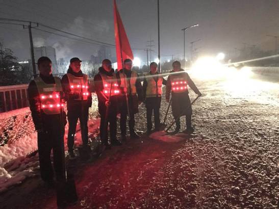 此次除雪工作豐達(dá)公司共計(jì)出動(dòng)人員1000余人次,機(jī)械設(shè)備380臺(tái)班,使用融雪劑、黃砂、石子等除雪物料900余噸。
