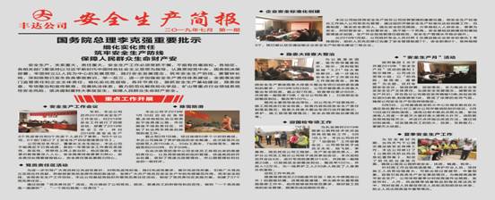 為進(jìn)一步宣傳落實(shí)安全生產(chǎn)法律法規(guī)和集團(tuán)安全生產(chǎn)要求,樹(shù)立安全第一思想,豐達(dá)公司根據(jù)安全生產(chǎn)實(shí)際情況,編制安全生產(chǎn)簡(jiǎn)報(bào)。簡(jiǎn)報(bào)包含安全生產(chǎn)重點(diǎn)工作和一線工作情況以及安全知識(shí)等六項(xiàng)內(nèi)容。