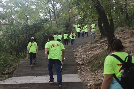 途中,大家興高采烈,談笑風(fēng)生,時(shí)而你追我趕、奮力攀爬,時(shí)而互相鼓勵(lì)、攜手并進(jìn),整個(gè)登山過程洋溢著溫馨、愉悅的氛圍,大家享受著登山的樂趣,向終點(diǎn)進(jìn)發(fā)。從花果山山門到九龍橋,最考驗(yàn)大家體力的是十八盤,十八盤位于花果山腰部的竹節(jié)嶺上,349級(jí)石階層層相迭,巧相搭構(gòu),通向嶺端,隨著高度的不斷攀升,加之蜿蜒崎嶇的山路起伏跌宕,不少職工累的氣喘吁吁,大汗淋漓,但是大家仍然興致盎然,朝著目標(biāo),不停地向上攀登。