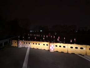 28日零點(diǎn)根據(jù)業(yè)主緊急通知,對(duì)宋跳及灌云西收費(fèi)站進(jìn)行封閉作業(yè)。公司緊急調(diào)配攔路水馬26個(gè),錐桶80個(gè),太陽(yáng)能閃光箭頭指示燈3臺(tái)。出動(dòng)工具車(chē)3臺(tái),人工7人。分成2個(gè)施工班組,及時(shí)封閉宋跳及灌云西收費(fèi)站3條出口匝道。