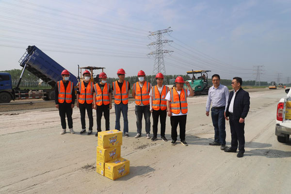 (圖一、二、三為董事長(zhǎng)王永生及工會(huì)主席李春堯走訪(fǎng)慰問(wèn)疏港大道工地及工程分公司)