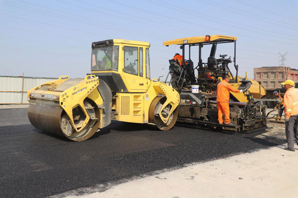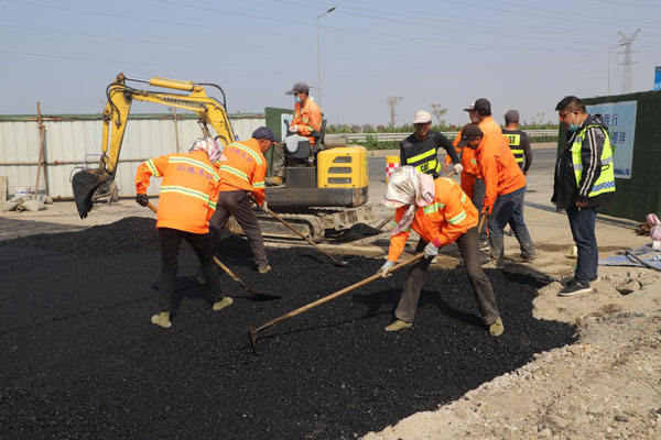 (圖四、五為基層一線(xiàn)職工進(jìn)行道路瀝青鋪設(shè))