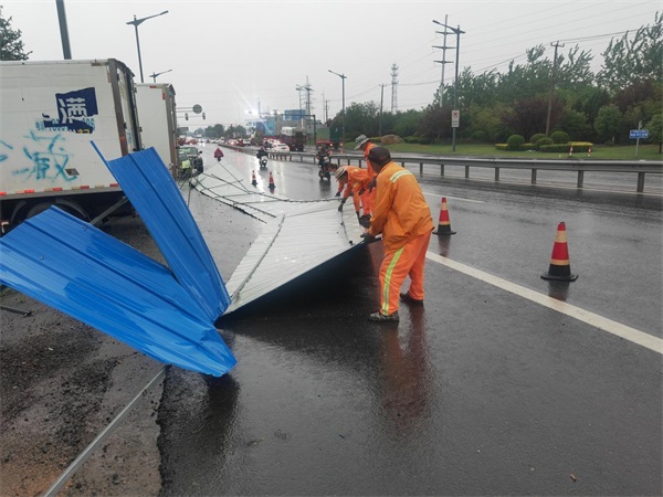 在搶險(xiǎn)任務(wù)中,公司橙色突擊隊(duì)?wèi)?yīng)急搶修人員火速行動(dòng),沖鋒在前,他們無懼風(fēng)雨逆風(fēng)而行,奮戰(zhàn)在搶險(xiǎn)保暢第一線。截止28日上午12時(shí),公司共出動(dòng)橙色突擊隊(duì)員200人次,應(yīng)急搶險(xiǎn)人員187人次,應(yīng)急車輛113臺(tái)次,及時(shí)處置路面積水15處,清理倒伏樹木130余棵,清理路面障礙物40余處,修補(bǔ)坑塘120余平方,有效確保了管養(yǎng)道路的安全暢通。