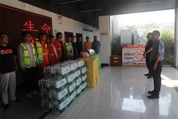 7月18日下午,豐達公司在家領(lǐng)導(dǎo)班子成員到權(quán)屬五家單位開展了夏季安康“三送”活動??偨?jīng)理王梁洲代表公司領(lǐng)導(dǎo)班子看望慰問了在一線戰(zhàn)高溫、保暢通的廣大職工,為他們送上綠豆、涼茶等防暑降溫物品。每到一處,總經(jīng)理王梁洲與大家親切交談,感謝他們?yōu)楣景l(fā)展所付出的心血和汗水,并叮囑他們注意防暑降溫和安全生產(chǎn),實施高溫錯時作業(yè),切實做好勞動保護工作。同時要求各單位把防暑降溫工作落實到每個工地、班組和職工個人,把維護廣大職工安全和健康權(quán)益落到實處,盡力為職工營造良好的工作環(huán)境。