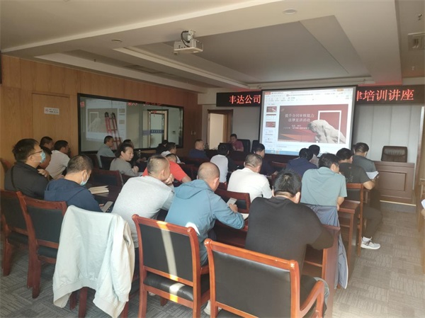 為增強公司員工的法律知識,提高企業(yè)合同管理水平,在訂立合同及合同實行中規(guī)避風險,維護企業(yè)和個人的合法權(quán)益。9月23日,豐達公司邀請上海方本(連云港)律師事務所尚勇律師開展了題為《提升合同審核能力法律宣講活動》的法律知識講座。各分公司經(jīng)理、各部門負責人及有關(guān)人員參加培訓。