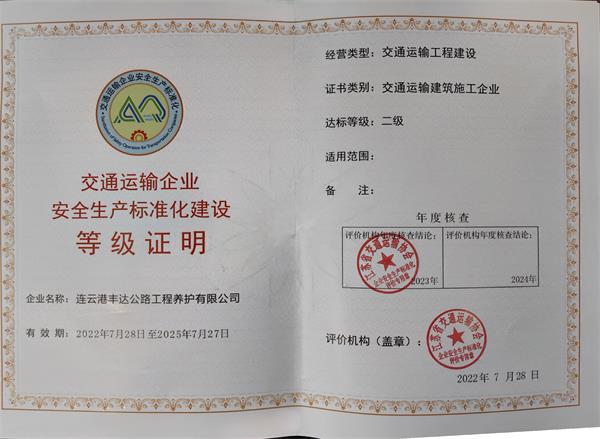 7月5日,豐達(dá)公司順利完成交通運輸二級安全生產(chǎn)標(biāo)準(zhǔn)化企業(yè)年度復(fù)審工作。