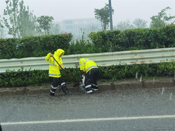 降雨期間,公司嚴(yán)格按照汛期工作要求,組織專(zhuān)項(xiàng)隊(duì)伍,開(kāi)展各項(xiàng)處置工作,第一時(shí)間對(duì)管養(yǎng)的國(guó)省干線(xiàn)道路、寧連高速、東疏港高速養(yǎng)護(hù)沿線(xiàn)進(jìn)行巡視,對(duì)積水道路排水口進(jìn)行清理,確保排水通暢。同時(shí),及時(shí)掌握綜合客運(yùn)樞紐、華聯(lián)地下通道、石梁河景區(qū)等物業(yè)項(xiàng)目汛情,迅速開(kāi)展排澇工作。此次防汛搶險(xiǎn)共出動(dòng)橙色突擊隊(duì)員106人次,應(yīng)急車(chē)輛11臺(tái),處置路面積水23處,清理倒伏樹(shù)木19棵,清理路面障礙物31余處。