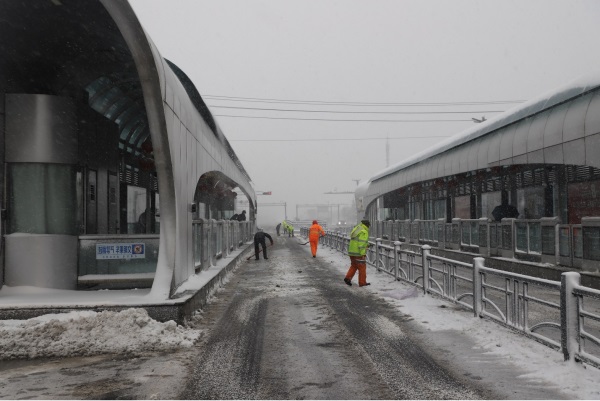 此次掃雪除冰主要采取機械設(shè)備作業(yè)為主,人工作業(yè)為輔的方式進行連續(xù)作業(yè),對公司所管養(yǎng)新港城大道、G228、G310、S242等多條主要國省干線、BRT專線和東疏港高速公路等彎道、匝道、橋梁、陡坡等易結(jié)冰、易發(fā)生事故路段的積雪冰凍進行重點清除。同時,高鐵站綜合客運樞紐對廣場及車輛出入口的積雪進行了及時清理,確保進出站旅客的安全。