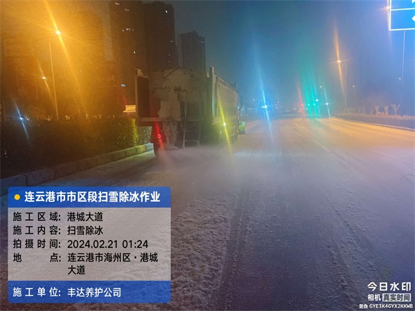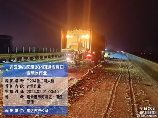公司迅速投入除冰雪戰(zhàn)役,做好管養(yǎng)的國省干道、港城大道、連徐高速及寧連高速等重點(diǎn)路段應(yīng)急備戰(zhàn)工作,針對長陡大坡路段、橋梁、隧道出入口、背陰處等易積雪重點(diǎn)路段,提前布置防滑沙袋。20日晚,市區(qū)突降大雪,公司迅速出動橙色突擊隊(duì)及各重要值班值守人員晝夜奮戰(zhàn)冰雪一線,并連夜組織除雪車、撒布一體機(jī)等車輛在公司管養(yǎng)的國省干線、高速公路、港城大道等路段進(jìn)行掃雪除冰作業(yè),不間斷鏟雪除冰,經(jīng)過公司干部職工連夜奮戰(zhàn),保證了車輛道路暢通,守護(hù)群眾出行安全。截止21日上午8點(diǎn),共出動了撒布一體機(jī)15臺,鏟雪車9臺,其他機(jī)械設(shè)備19臺套,人員200人次,撒布融雪劑600余噸。