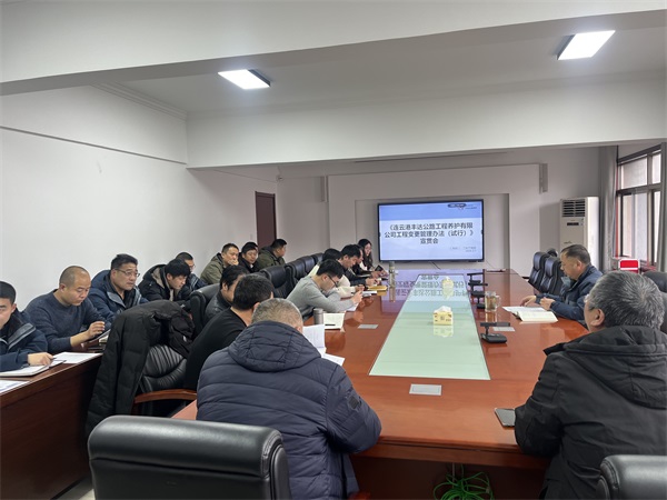 為進(jìn)一步加強(qiáng)豐達(dá)公司工程項(xiàng)目的管理,規(guī)范工程變更行為, 合理控制工程造價,促進(jìn)工程變更工作標(biāo)準(zhǔn)化、規(guī)范化和程序化,根據(jù)國家相關(guān)法律法規(guī),并結(jié)合公司實(shí)際情況,特制定《連云港豐達(dá)公路養(yǎng)護(hù)有限公司工程變更管理辦法(試行)》,并在公司內(nèi)部進(jìn)行宣貫學(xué)習(xí),公司總經(jīng)理馬軻、各分子公司領(lǐng)導(dǎo)班子成員及相關(guān)工作人員參加會議。