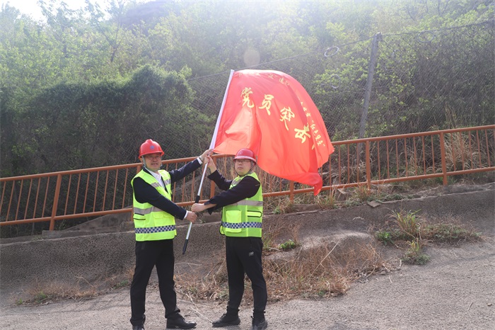 活動中,首先由孫婷介紹“扎穩(wěn)根基“汛”速行動 聯(lián)合筑牢“紅色堡壘”2025年汛期公路災(zāi)害風(fēng)險隱患排查工作準(zhǔn)備情況,其次由王梁洲授黨員突擊隊隊旗。“黨員突擊隊”工作小組由公管公司、豐達公司項目部人員聯(lián)合成立,突擊隊將結(jié)合黨員突擊隊體系建設(shè)進行標(biāo)準(zhǔn)化建設(shè),并于4月份、7月份分別組織隊員開展以“守初心重走長征路 擔(dān)使命共創(chuàng)示范崗”、“汛期衛(wèi)士保駕護航 道路安全黨旗飄揚”為主題的黨日活動。