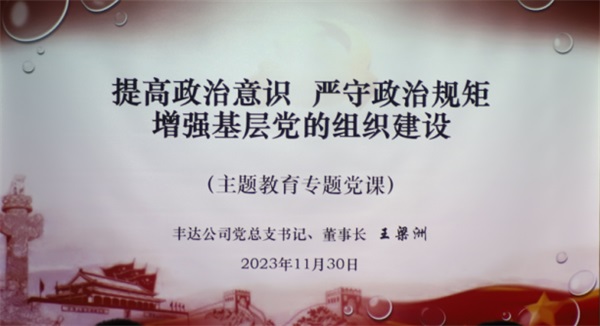 根據(jù)豐達(dá)公司主題教育工作安排,在11月30日上午,豐達(dá)公司黨總支書記、董事長(zhǎng)王梁洲同志以“提高政治意識(shí)、嚴(yán)守政治規(guī)矩、增強(qiáng)基層黨的組織建設(shè)”這個(gè)主題,向中層干部、黨員和入黨積極分子講授專題黨課。