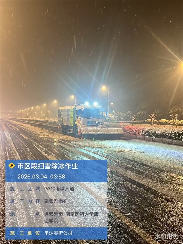 此次掃雪除冰,公司共組織80余工作人員,30余臺套掃雪融雪車輛,對港城大道、徐新公路、海州區(qū)縣道、寧連高速、東疏港高速及G310、G228、G204、省道242進(jìn)行掃雪作業(yè),撒布融雪劑300余噸。截止早上6點半公司管養(yǎng)道路已全部清掃完畢,路面無積雪和冰凍。