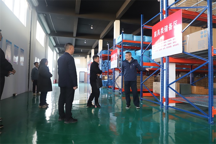 金桂華一行對應(yīng)急處置中心的應(yīng)急機(jī)械設(shè)備、應(yīng)急物資儲備庫的設(shè)施和救災(zāi)物資進(jìn)行了檢查,詳細(xì)詢問了應(yīng)急物資裝備儲備、物資出入庫程序、裝備管理信息系統(tǒng)、應(yīng)急人員培訓(xùn)等情況,并參觀了豐達(dá)公司橙色突擊隊(duì)隊(duì)部,現(xiàn)場聽取了馬軻關(guān)于應(yīng)急機(jī)械設(shè)備配置、救援隊(duì)伍和橙色突擊隊(duì)建設(shè)等相關(guān)情況匯報(bào)。